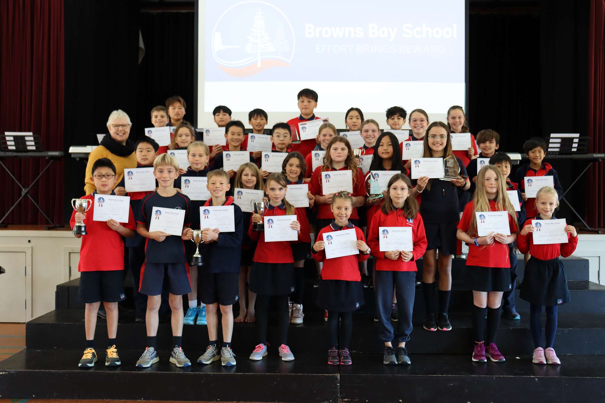 They performed with such enthusiasm and confidence, doing themselves and our school proud. They were also respectful and encouraging when the very young kindergarten students stood up to perform. It was such a pleasure to be part of the evening and thanks to the parents who took time out on a Friday evening to ensure our students could take part – Karen Warren.