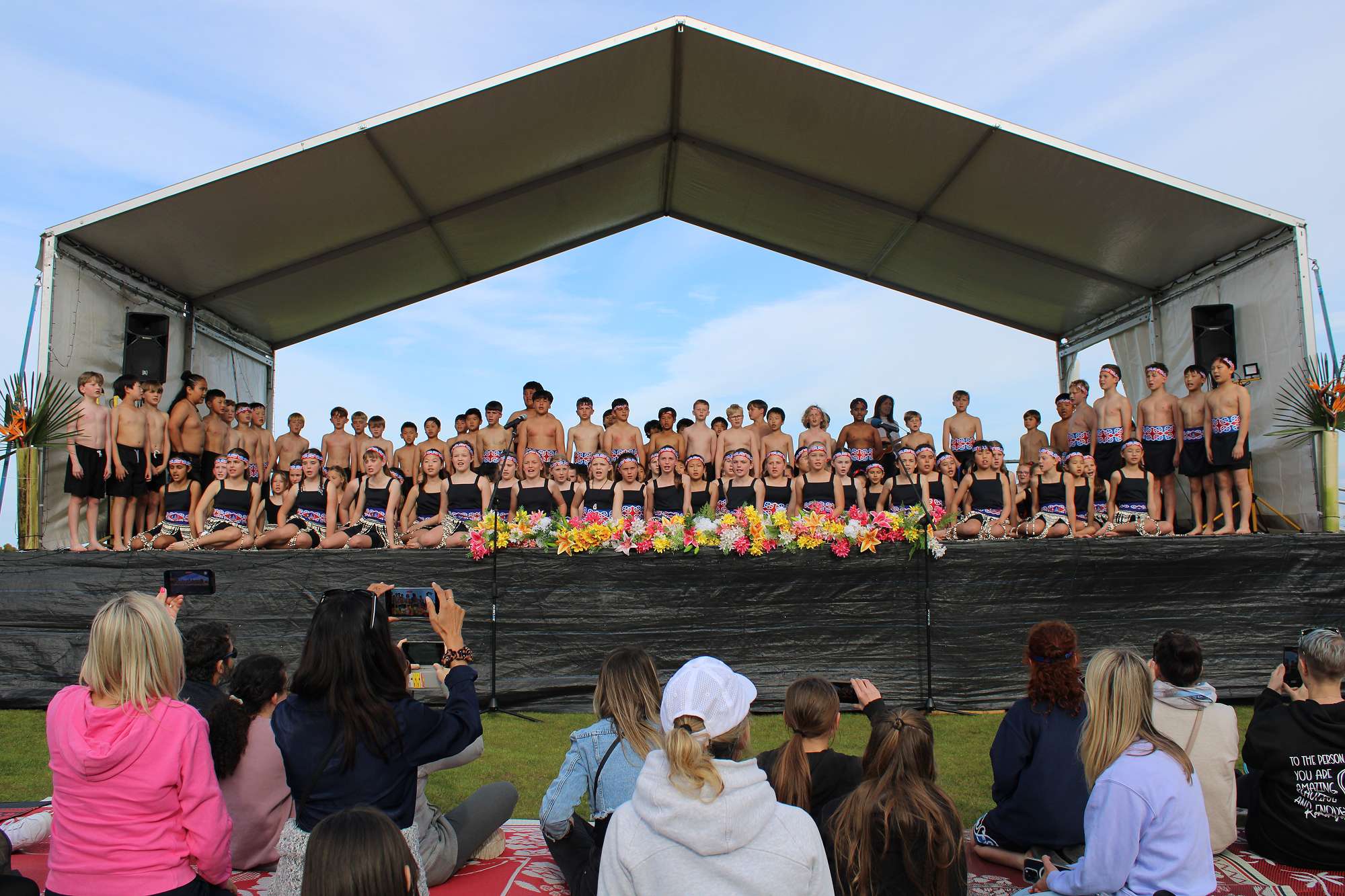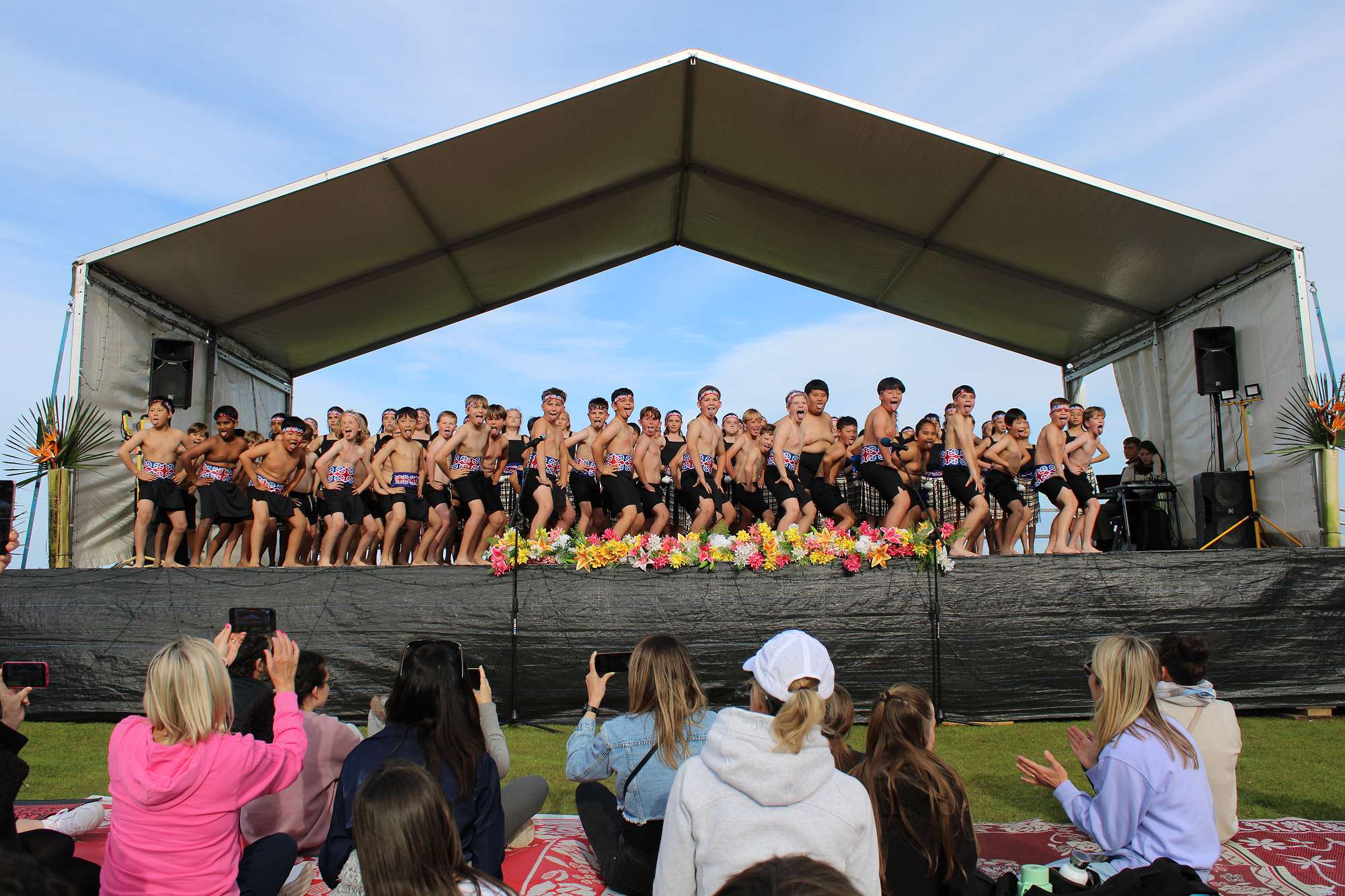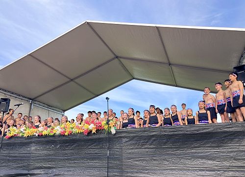 110 of our BBS Kapa Haka Year 5 and 6 students performed at the Pipiwharauroa Festival, held on an outside stage at Rangitoto College. The weather was lovely, and a large crowd enjoyed lots of cultural performances from a number of schools. Our school were the 6th group on stage and from the moment they walked up, they absolutely gave their very best in performance – with their vocals, movement, poi and haka all superb. So very proud to have these students performing and representing our school the way they did.