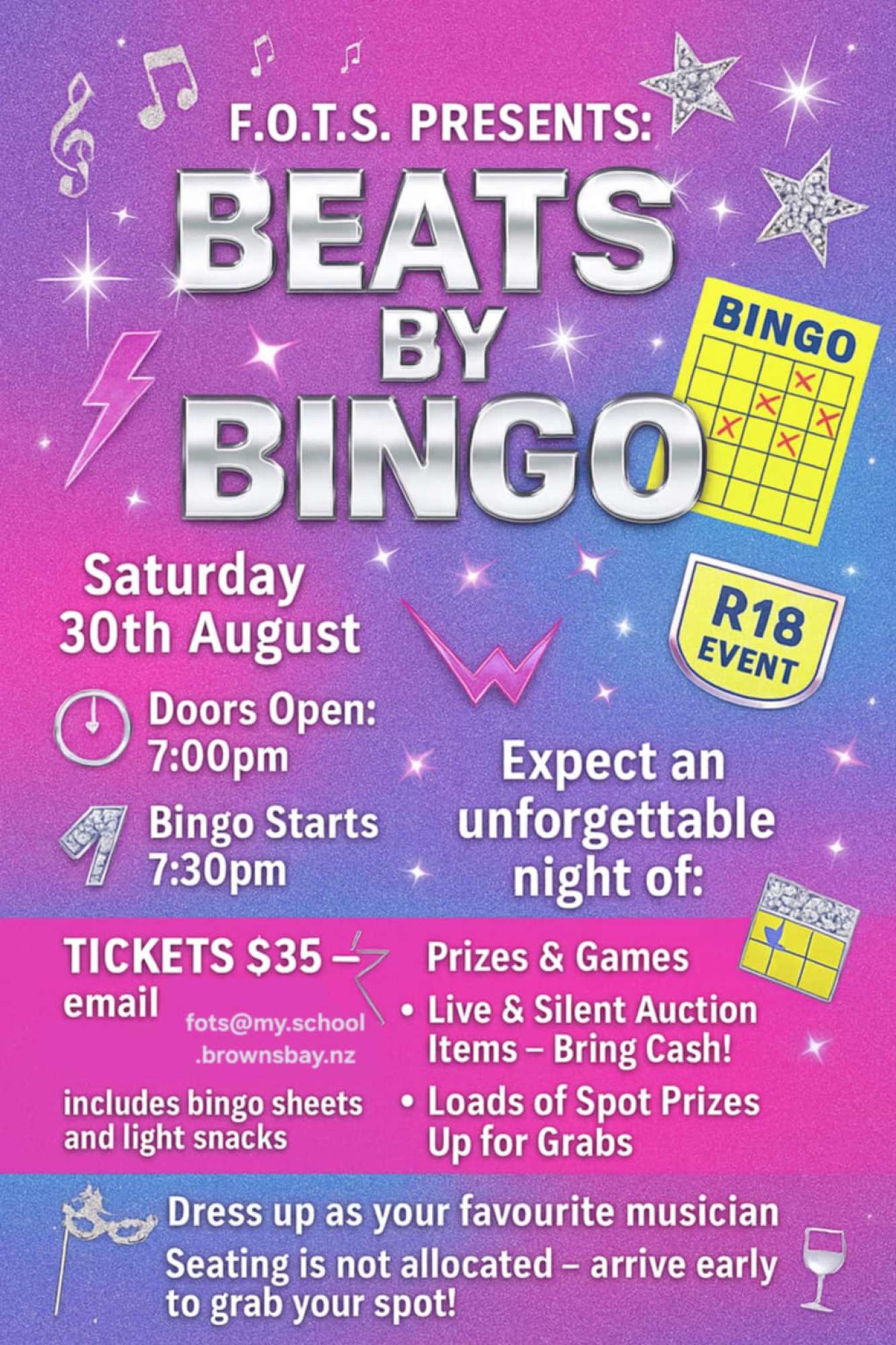 FOTS Beats By Bingo & Silent Auction Night - Saturday 30 August (See FOTS section below for more information)