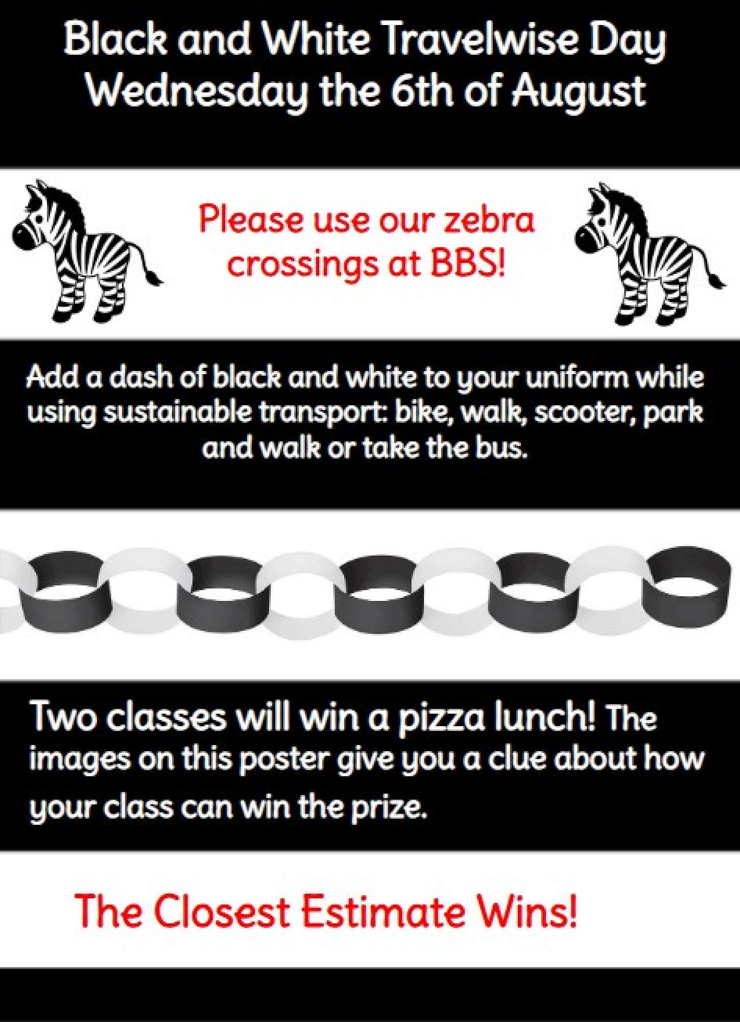Travelwise Black & White Event - Wednesday 06 August (Add a splash of black & white to your school uniform)๐ฆ (See School Events below for more info)
