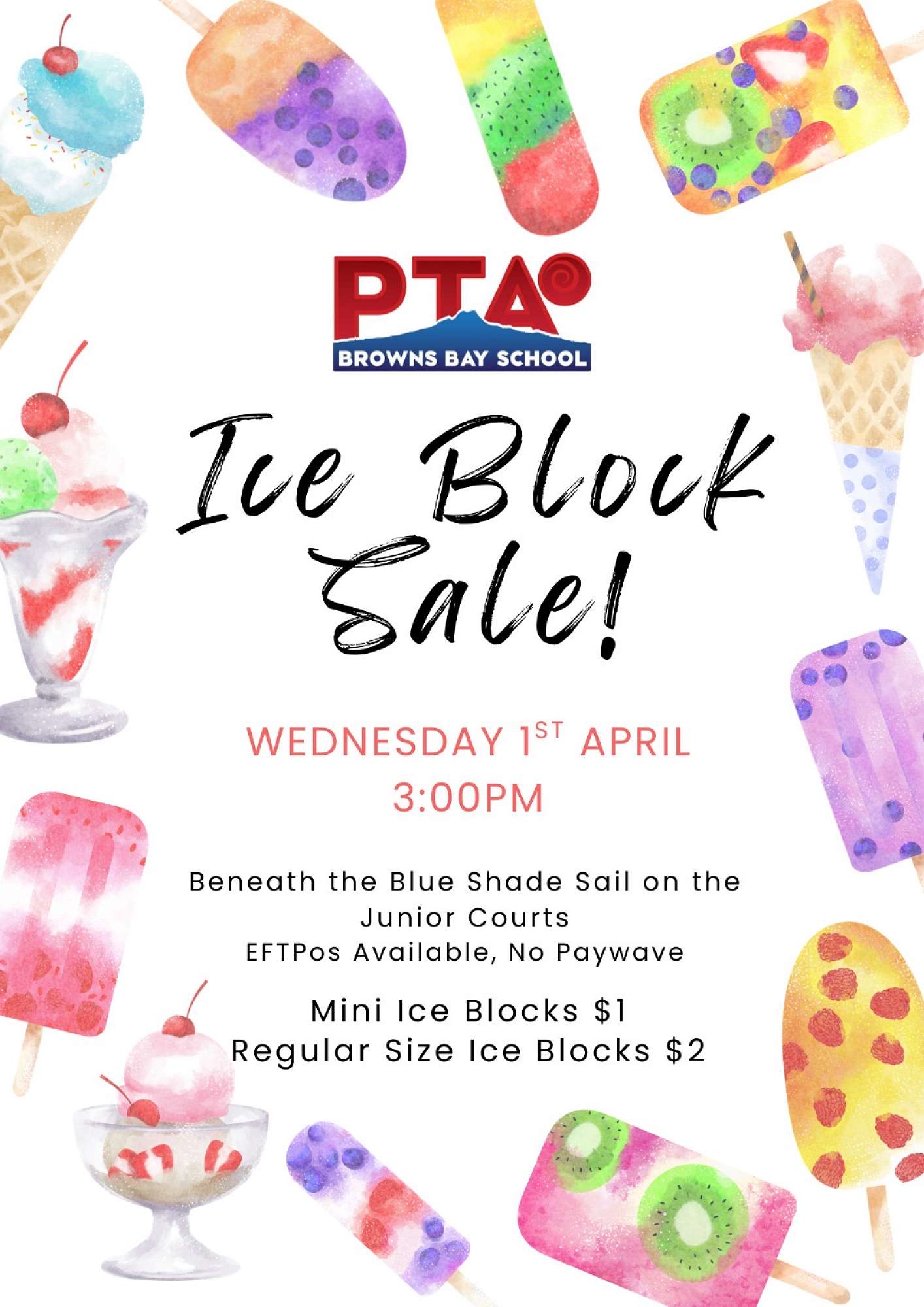 Ice Block Sale - Wednesday 01 April - 3pm (Junior Playground)