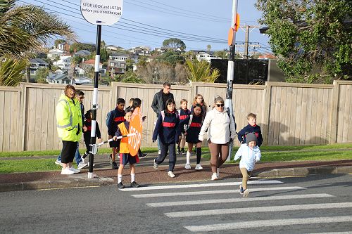 Bikes and scooters must be walked across the crossings and into the school grounds.