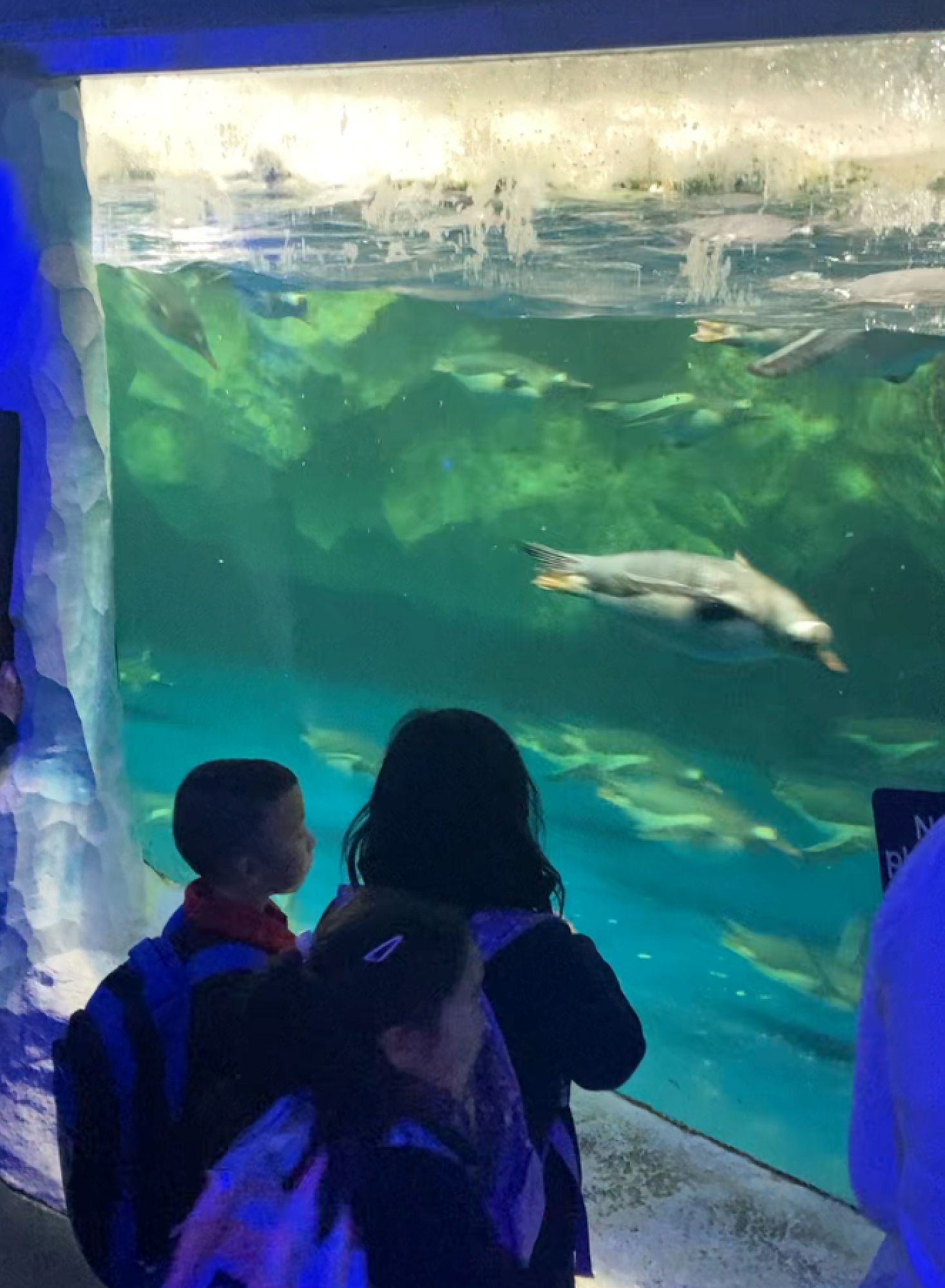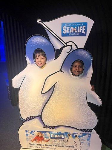 Some highlights were going through the shark tunnel, seeing the rescued sea turtle, and their penguin colony.