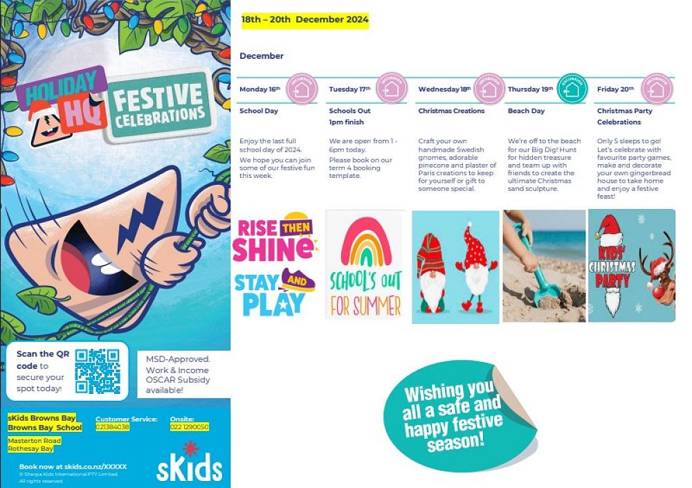 sKids are open for bookings on the last day of term (Tuesday 17 December)