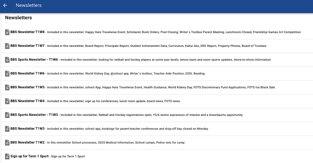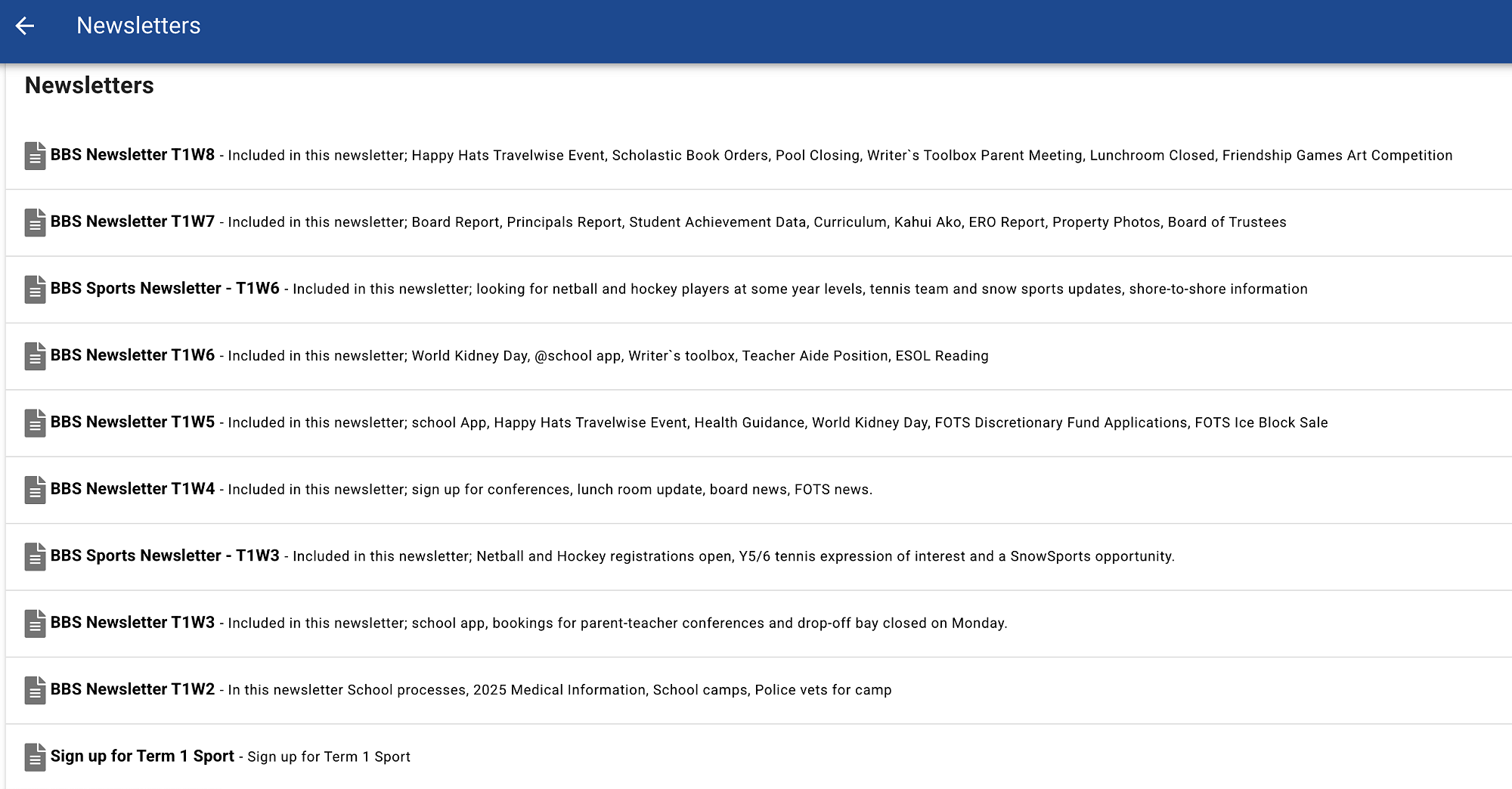 The screenshot below is from the @school app, showing how the newsletters are stored and indexed.