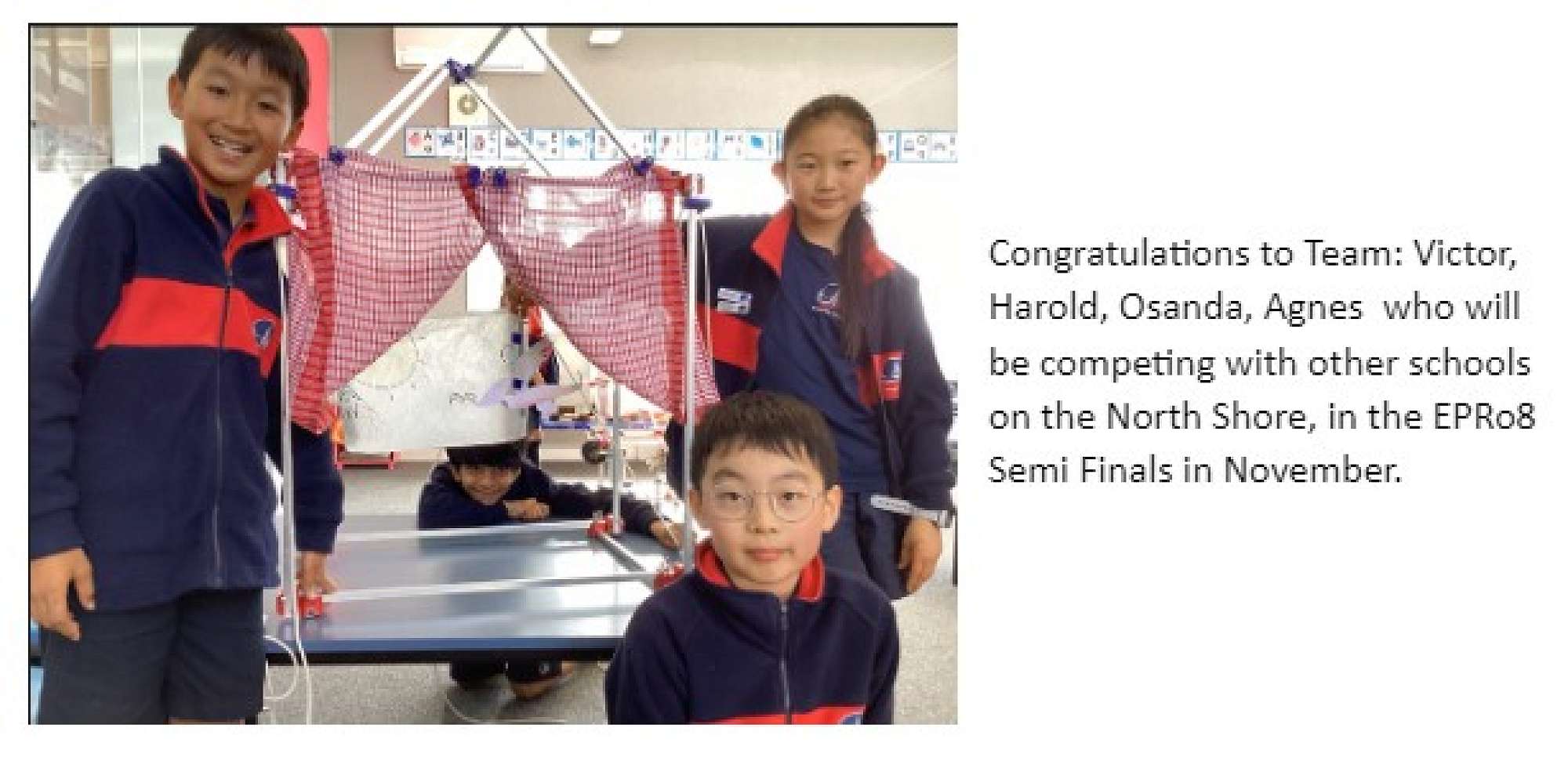 Distinction: Kevin Wen, Yomal Navaratne, Meilun Song, Chris Xu, Charlie Yang, Harold Yang, Ryan Deng, Ella Gao, Grace Gao, Jerry Luo, Rocky Meng