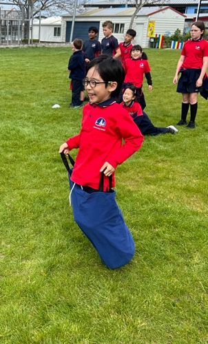 They had a ‘kiwi games’ afternoon. (Sack and three legged races!)