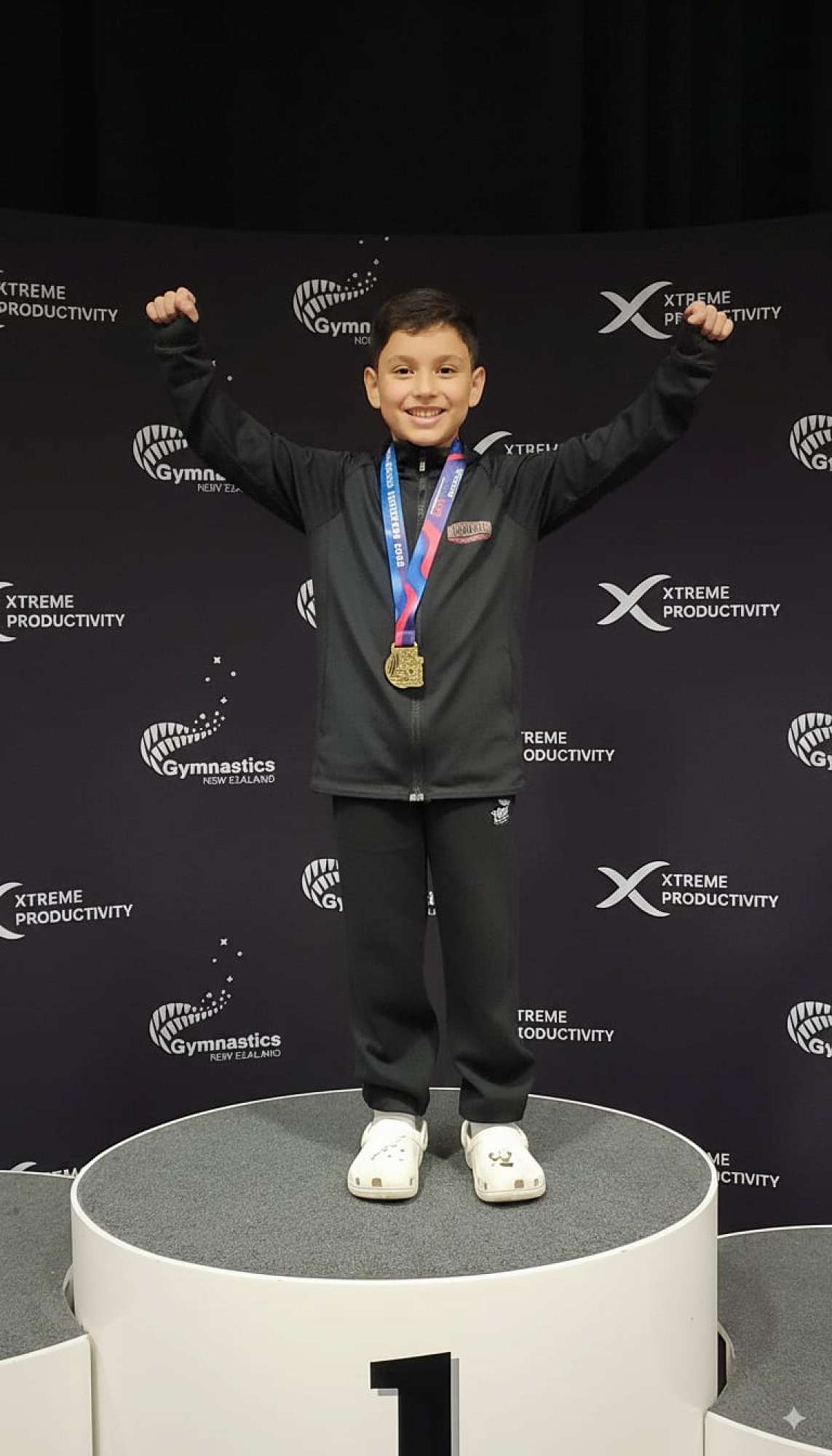 Gabriel from Room 19, Year 5, competed at the Gymnastics NZ Nationals during the first week of the holidays and got 1st place in Tumbling (age 9–10 group)!