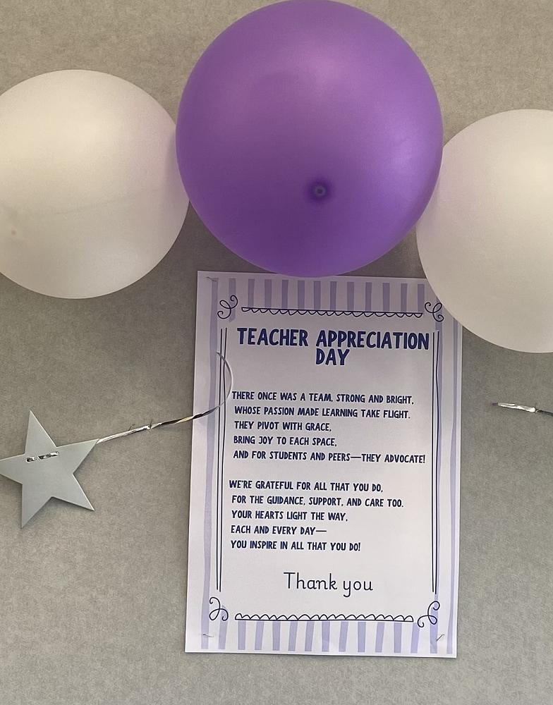 On Friday we celebrated “Teacher Appreciation Day” with our wonderful teachers. Please never underestimate what it means to our teachers to receive an email or personal thanks at any time of the year.