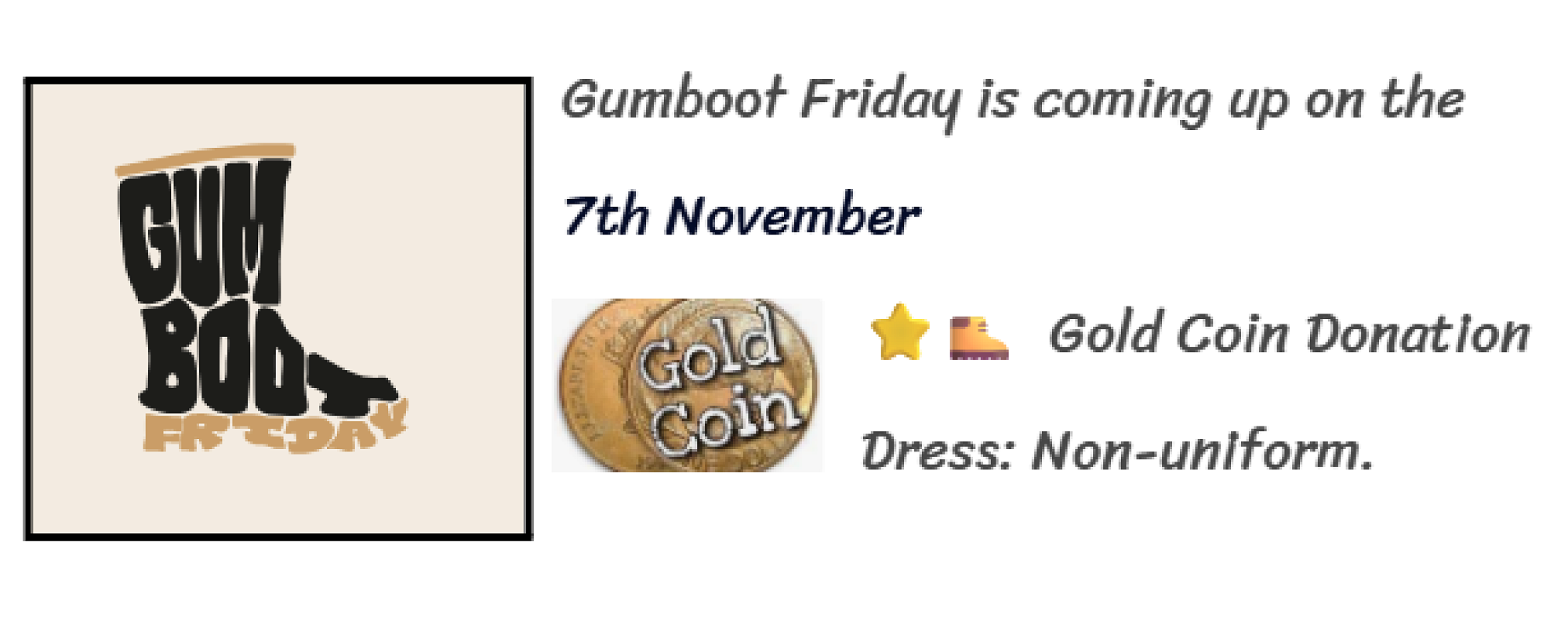 Gumboot Friday - Friday 07 November 🪙 Gold Coin Donation and Mufti Day