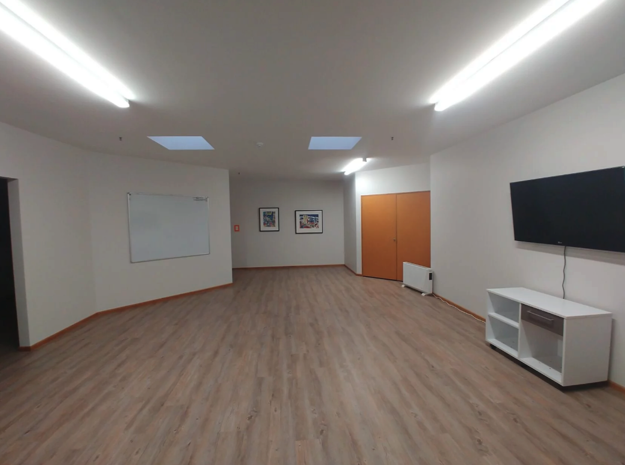 Workshop space capable of accommodating 15 to 20 people. Chairs, Tables, Whiteboard, TV, Sink and Toilet access via the room provided.