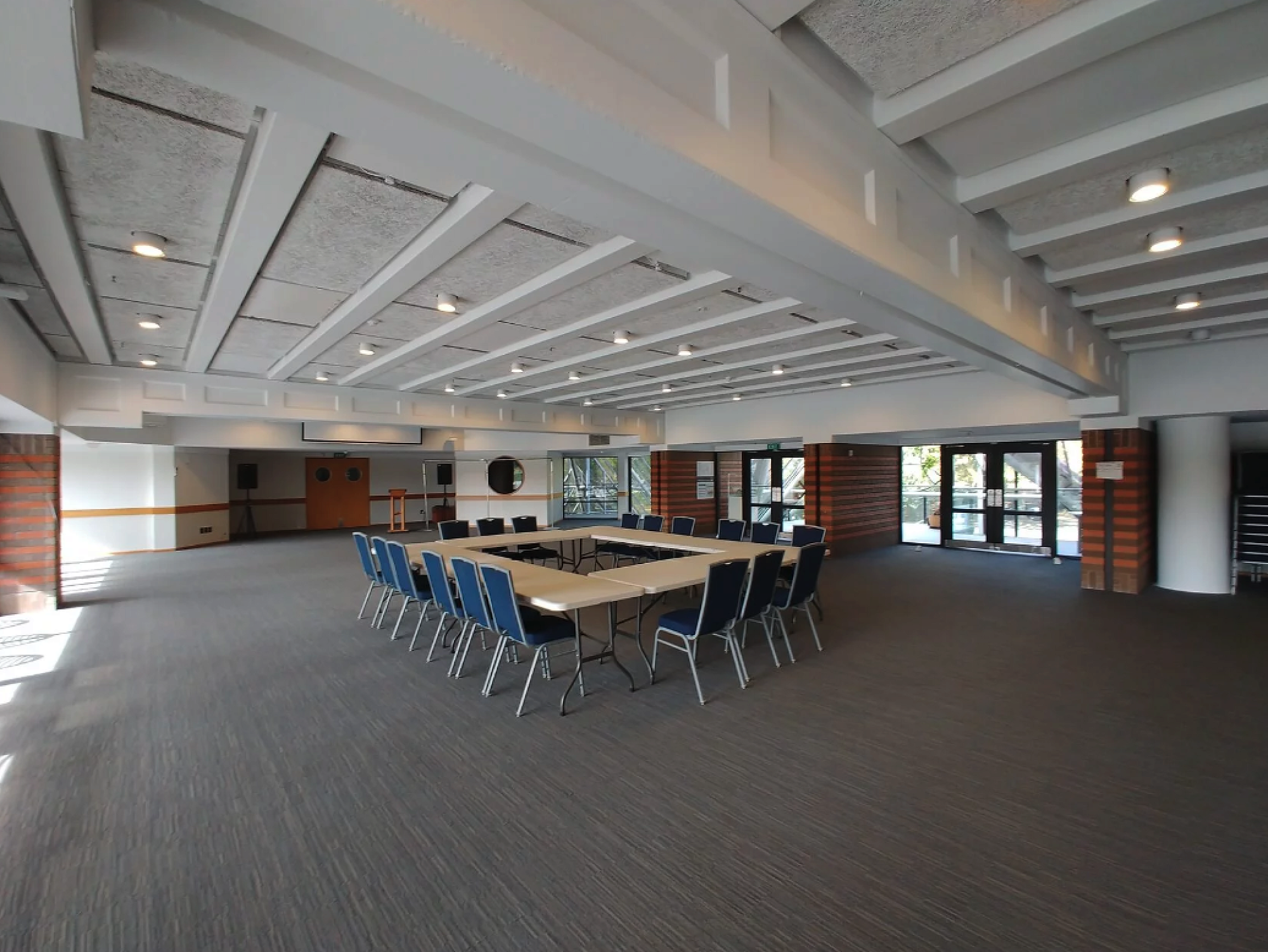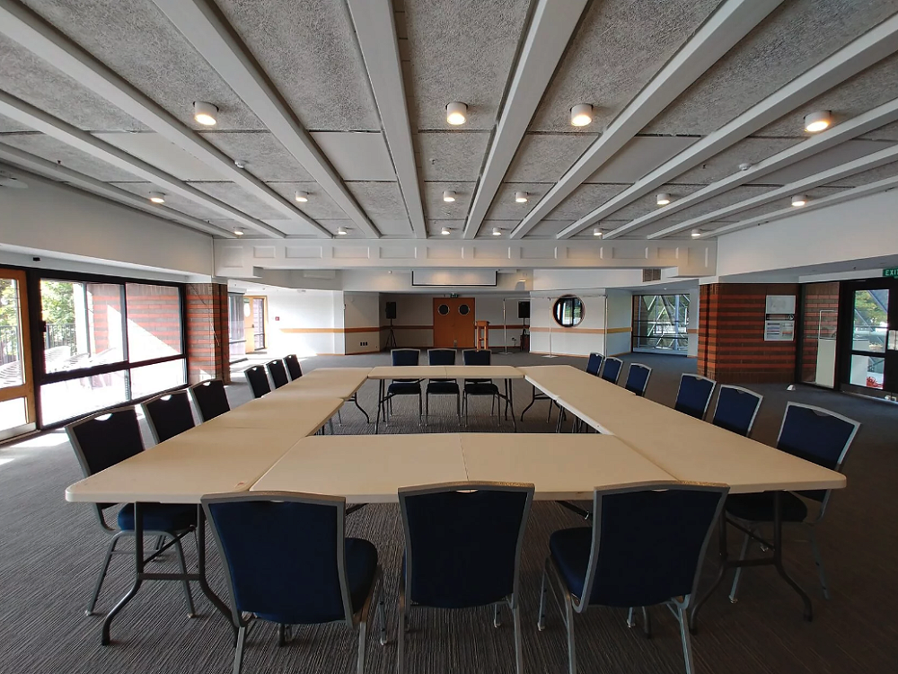 The Ground Floor Function Room is capable of accommodating up to 250 people, it is easily accessible through large double doors on both sides, either via the inside of the centre or through French doors that open up onto the netball courts outside.