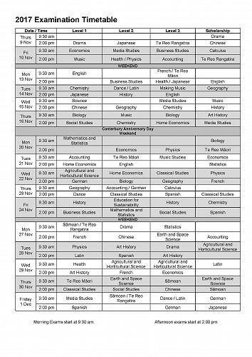 2017 NCEA Preparation and Exam Timetable