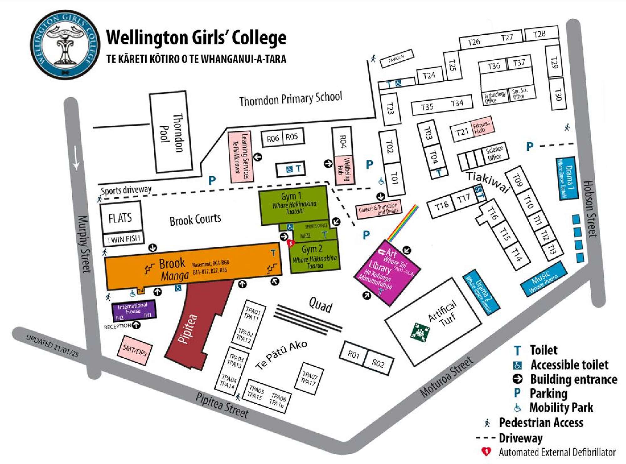 Staff can park their cars on the Sports Driveway and off Hobson Street by Tiakiwai other areas as outlined on the map on a first-come first-served basis.
