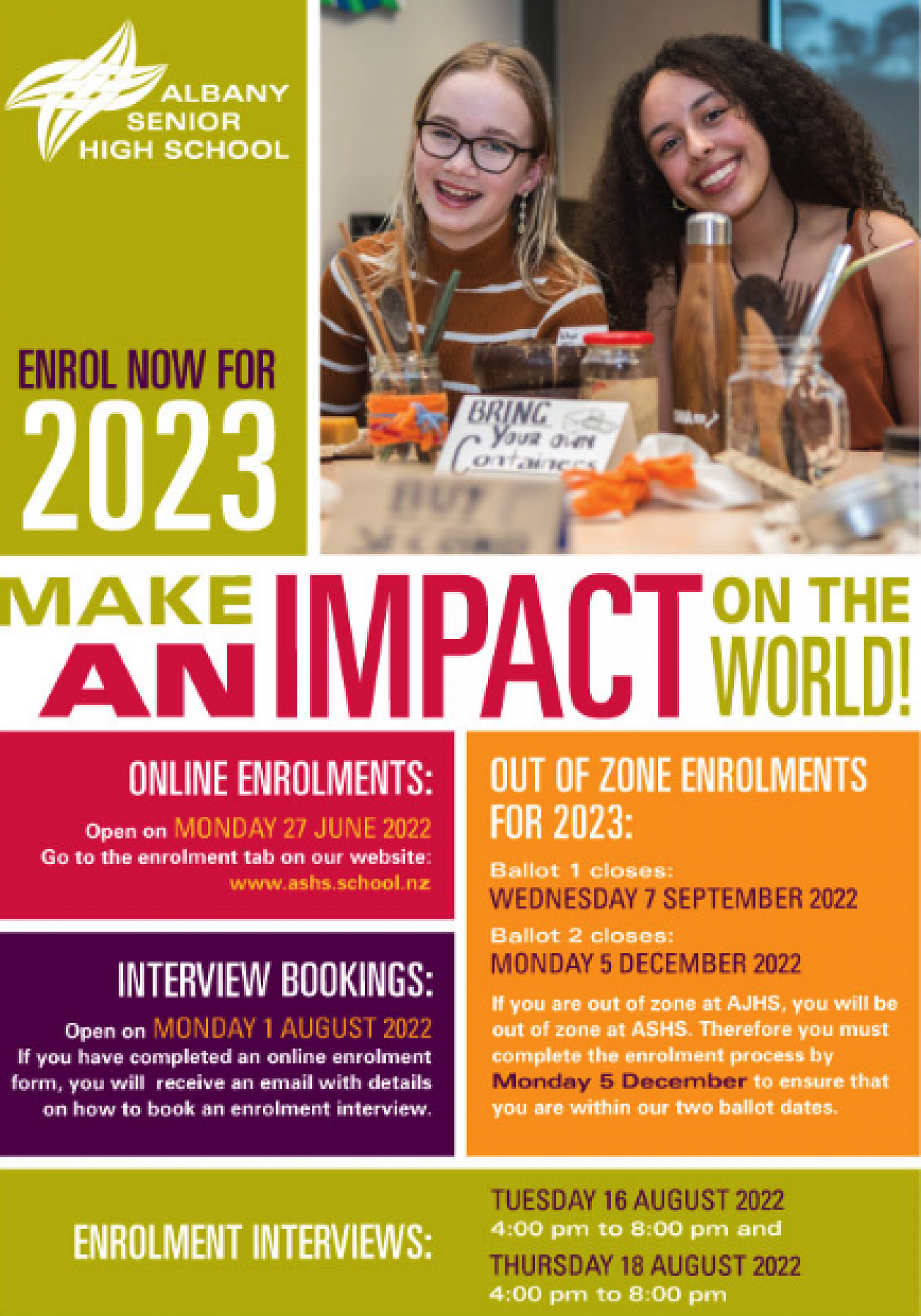 2023 In Zone and Out of Zone enrolments at Albany Senior High School are now open.