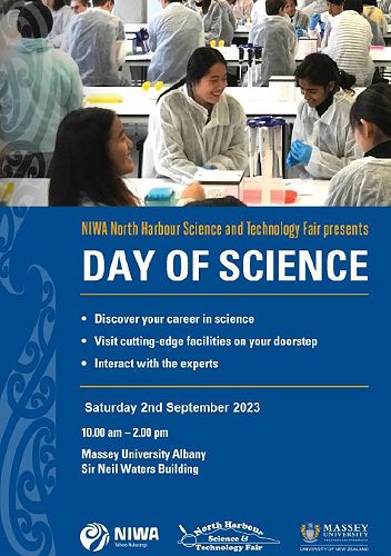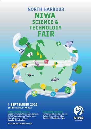 The North Harbour Science Fair has a public viewing on Saturday, 2nd September at Massey University in conjunction with the Massey University's Day of Science 10am - 2pm. See poster below for more details.