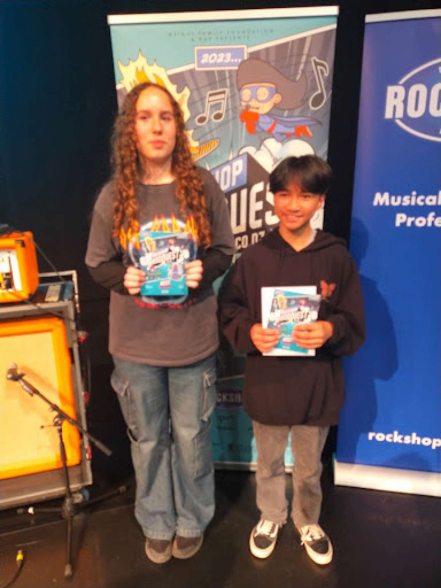 The Naughty Corner were placed 3rd on the night, winning $100 worth of music gear from the Rockshop for our school. The band, made up of Leo Simmons, Ambra Mazza, Anita Saunders, Luca Barron, Finn Morgan-Cao, Oliver Qiu and Guy Safronov are pictured above, with Gareth Kendon our Rock Band teacher. (Oliver Qiu and Guy Safronov are not in the picture.)