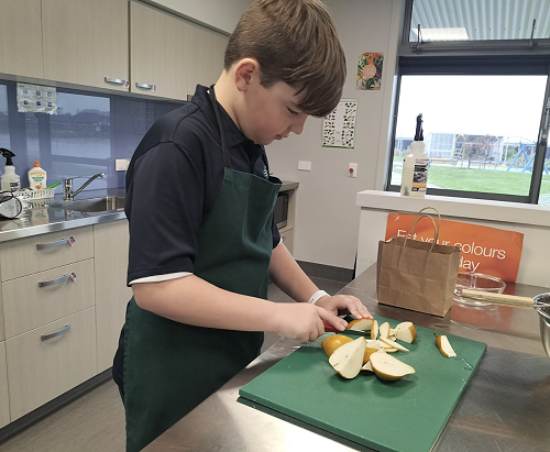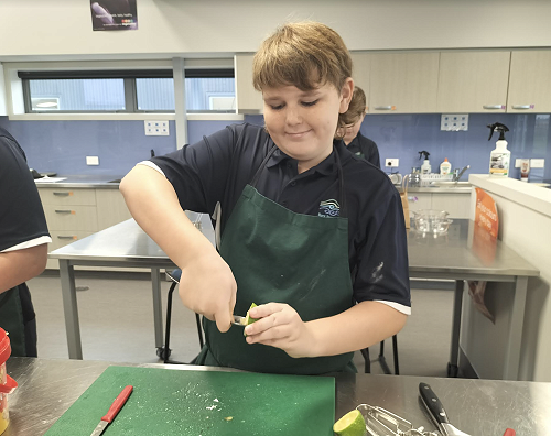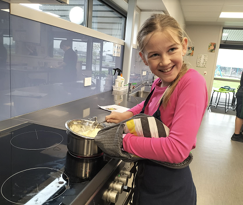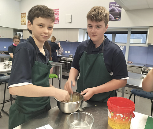 The class have been split into two - one group doing robotics and the other group doing cooking.