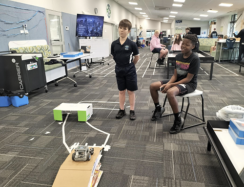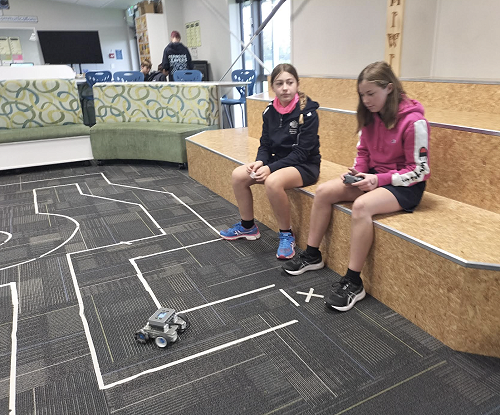 The robotics group were given a time trial challenge where they had to program their robot to manoeuvre around a course filled with bridges, roundabouts and obstacles.