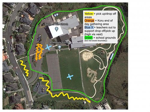 Koru Hub students: A Koru Hub teacher will be based on the edge of the car park area each morning between 8:30 - 9am. A member of the school leadership team will also be based around the school field and council playground area. Parents can walk their children to the edge of the school grounds and watch their child walk over to a staff member. The staff member will then direct the children in towards their hub. After school all Koru whānau teachers will bring their children out to the edge of the car park / road sloping down into the car park from Amesbury Drive. They will keep their group with them until a parent or caregiver has come and collected each child from them - as the teacher sees you they will send your child over to you. Please note that, on occasion, a different teacher may be with your child's group instead, if the whānau teacher is away sick or is on release from the classroom.