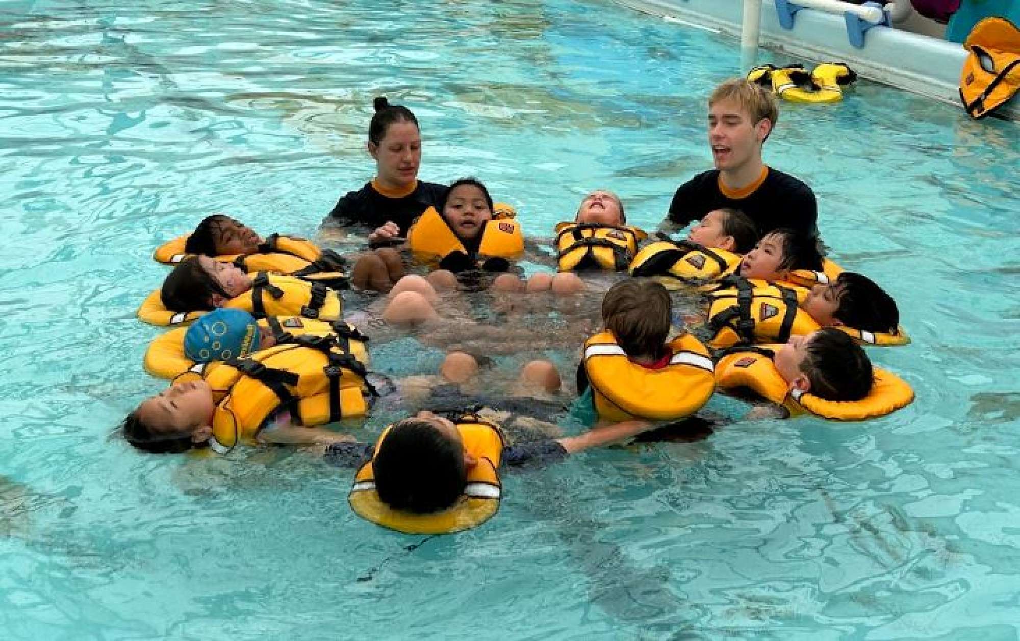 "We've loved that you get to learn new things like holding a cricket bat…oh, and a hockey stick too. I've liked doing the back float. Putting my head under the water is cool. Kicking my feet in the water helps me go fast! Doing a starfish on my back has been fun too. Front floats are tricky but can be super easy too. We also have to look under the water, and the instructor throws rings for us to find and bring back. I like doing duck dives, which is when you dive into the water, even though we don't have wings like ducks!"
