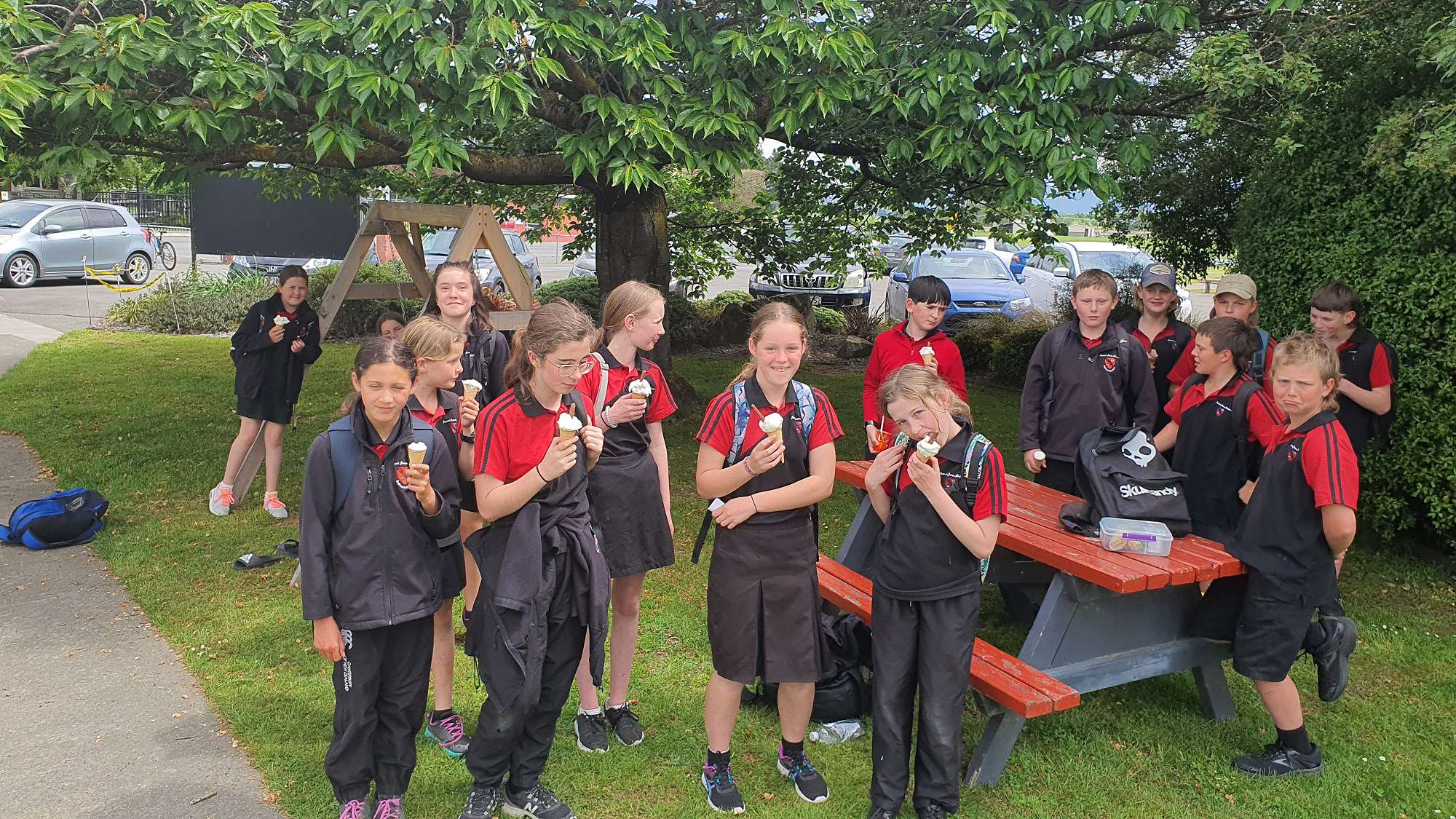 On Tuesday this week Year 7 were all treated to an ice cream thanks to the kind donation of a passer by as we were staining the domain furniture last week. The man approached Mrs Baldwin, asked what the students were doing, then gave her $40 with the instruction to “buy the kids an icecream”! This we did! It was great to see our students contributing to the local Culverden community and being recognised for doing so.