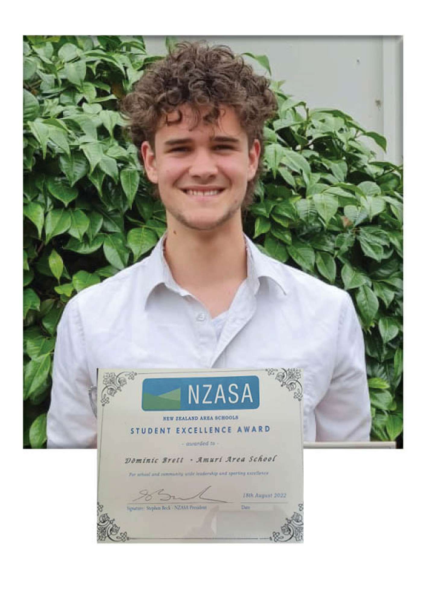 on being presented with the New Zealand Area School Excellence Award for 2022. This award is presented to the top three students in New Zealand Area Schools who exemplify academic, cultural or sporting excellence.Dominic was a great role model for his peers, who worked consistently at a high level to gain the DUX award in 2021. He was also a fantastic whanau leader and supported many sporting and cultural activities through his years at Amuri. This award is a much deserved recognition of his achievements. Well done!