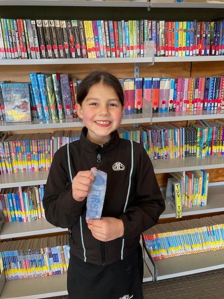 Charlie was presented a First Place ribbon in her gymnastics competition.