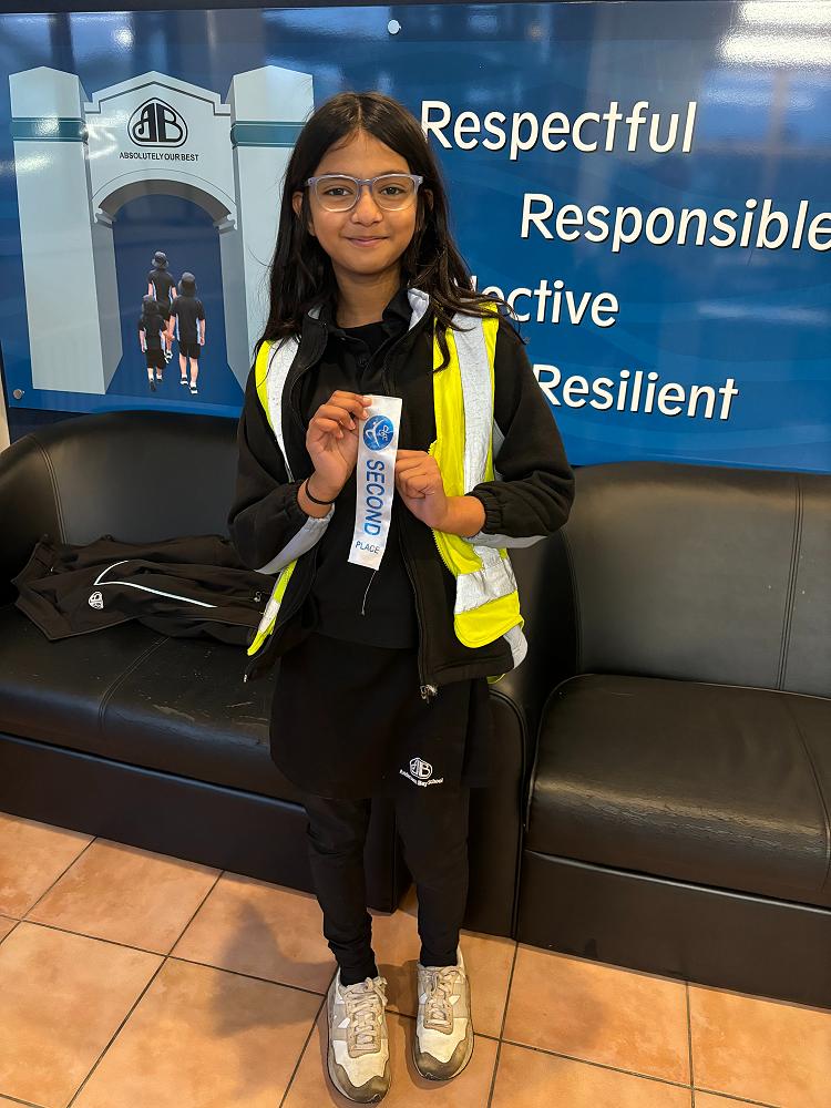 Joanna was awarded a Second Place ribbon in her gymnastics competition.