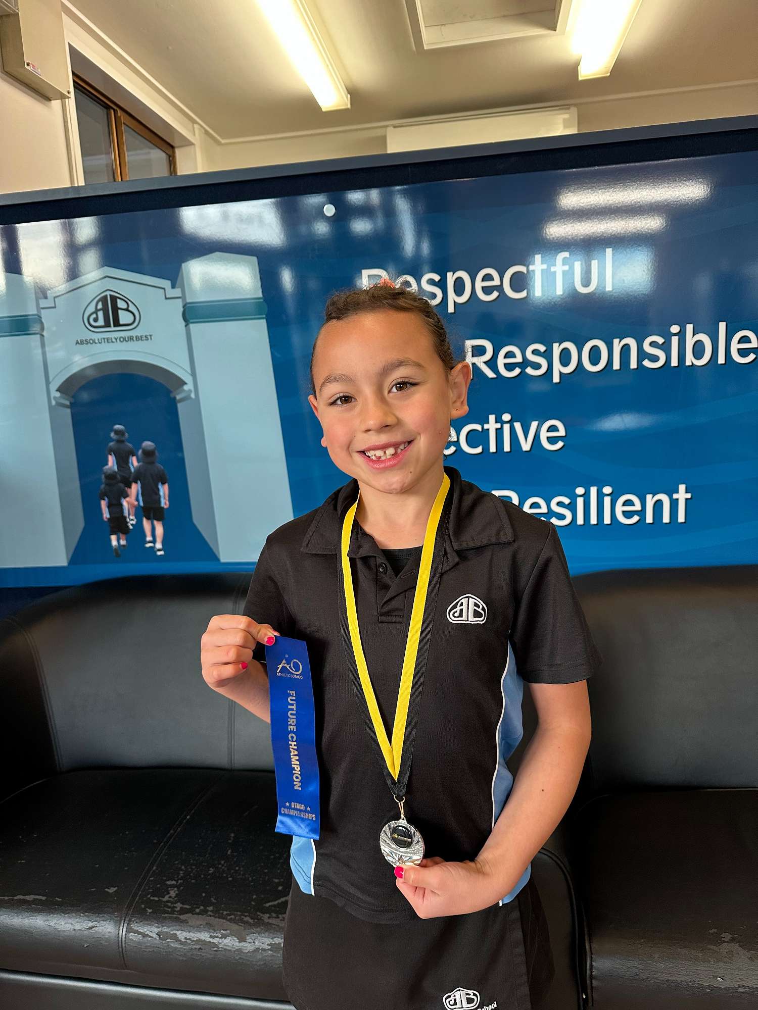 Nadia was awarded a Medal from Hill City Athletics for 2nd Best 2025 Athlete and a Ribbon for Future Champion Otago Championships.