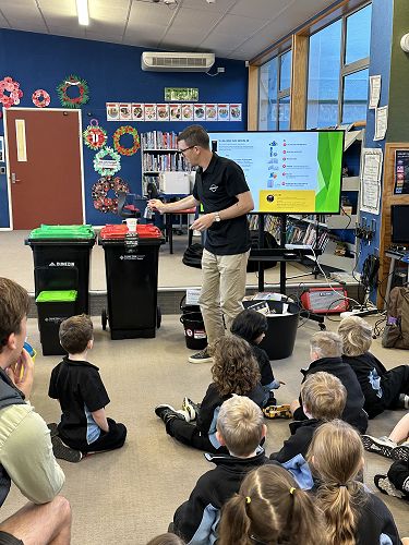 As part of our focus on Community this year, the Māhuri students worked with Rowan from the Dunedin City Council this morning to learn more about the new wheelie bins being introduced into Dunedin in July. There were some excellent discussions on how we can reduce rubbish, as well as learning about what should be put into each bin.