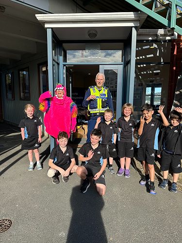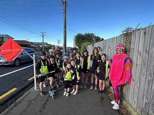 It was the perfect day today for Scout and Constable Greer to walk with children to school this morning. The sun was shining and the children were happy. Thanks to the parents who dropped their children off at one of the meeting points so the children could walk the last part of the way into school. The drop off points at the top of Every Street and on Highcliff Road provide a safe walking route to school for children, with no roads to cross.