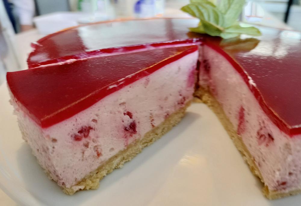 This is a rich yet not overly sweet with the perfect texture of a raspberry cheesecake. Celia loves making this cheesecake ahead, storing it in the refrigerator.