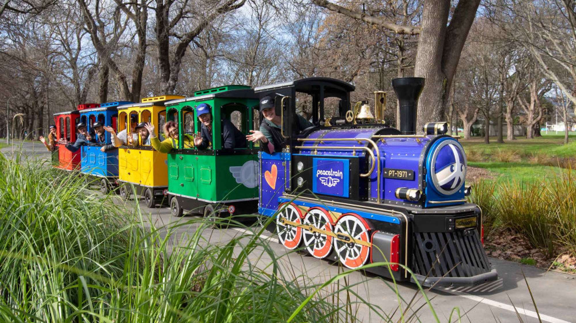 Not far away, in South Hagley Park, there is another tangible peace symbol. A miniature train offers free rides, starting at the Multicultural Recreation and Community Centre carpark. Between 10.00am and 4.00pm on the first and third Sunday of each month (except the winter months of June, July and August) this train chugs happily around the gardens. The train, named "Peace Train," was gifted to the city by singer Yusuf Islam, also known as Cat Stevens. Cat Stevens promotes world peace and wrote the song "Peace Train", which he sang at the Mosque Remembrance Service in 2019. Then he donated the peace train. At the launch, Mayor Lianne Dalzeil said, "He wanted to put a smile on young people's faces and inspire them to dream of a better world and good things to come."