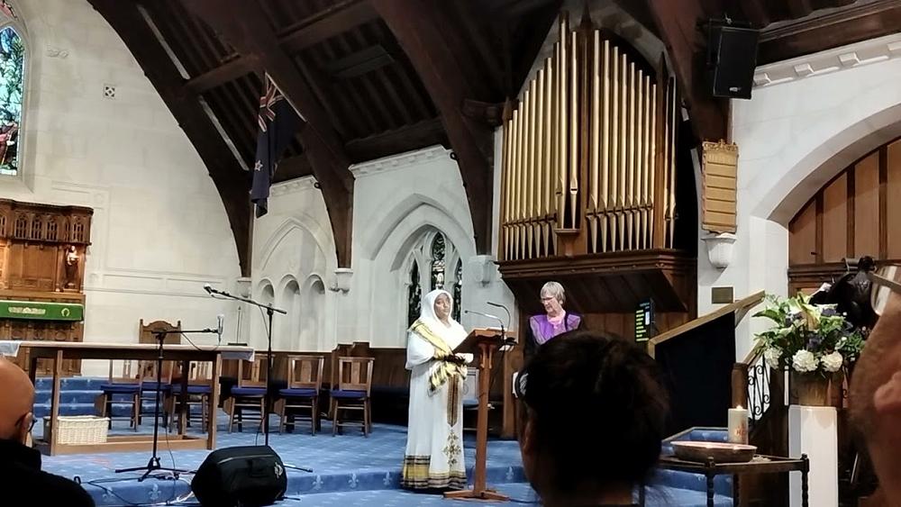 St Barnabas, Fendalton ELC Coordinator Olive Lawson, and Young Adults Minister Andy Dickson worked together with international migrants and students for a contemplative and rich interfaith service inside the church memorial building.
