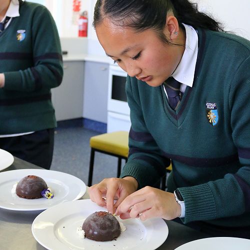 Twenty-one staff decked out in their finest pink ensembles attended the Sept. 6 event, which raised $860 for the Breast Cancer Foundation NZ. For $30 per head, staff enjoyed mocktails, cream cheese and sundried tomato-stuffed chicken with roasted vegetables. Dessert was either a white chocolate cheesecake or a chocolate dome filled with berry gelee, chocolate mousse and chocolate sponge - an original creation that took two days to make. Emma, Tahlia and Kate hosted the luncheon for their Level 3 Food Technology charity project. Fantastic work!