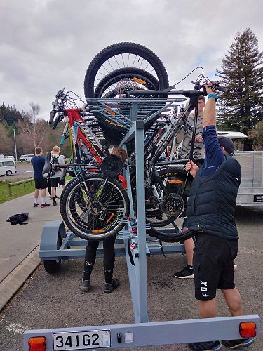 The trip to Rotorua, however, was easy thanks to an impressive specialist mountain bike trailer designed and built from scratch last year by Level 2 Product Developmentstudents Antony Death and Lily Richards. The trailer holds 19 bikes of any size in a herringbone formation, tows well, and looks sharp!