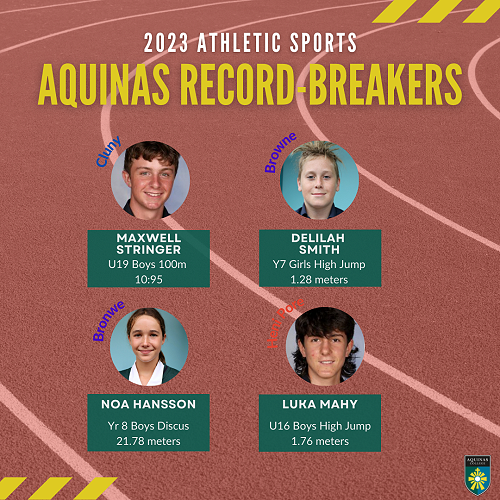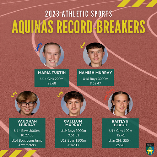 Here they are folks, the Aquinas athletes who smashed 11 school records at last week’s Athletics Day. Some amazing performances by some very talented athletes!