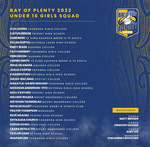 The two U16 teams will take part in the 2022 Chiefs U16 Regional Carnival on October 9-10 in Te Awamutu. A special mention to Jose Farrell (Y12) who also trialled for the Boys U16 side. Outstanding achievements and good luck for the tournament.
