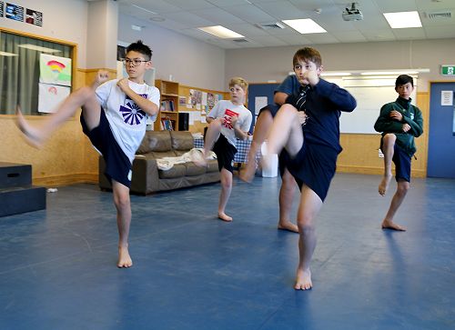 A group of junior Aquinas students has been learning Kung Fu at school thanks to the lunchtime tutorials of Year 8 teacher Kevin Elder.