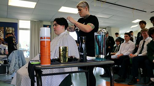 Level 4 Barbering students from Toi Ohomai visited Aquinas to sharpen up their skills and they weren’t short of customers. A line-up of slightly shaggy male students made use of the visiting barbers, queuing to get a free tidy-up. Toi Ohomai’s Level 4 Barbering qualification is a one-year course.