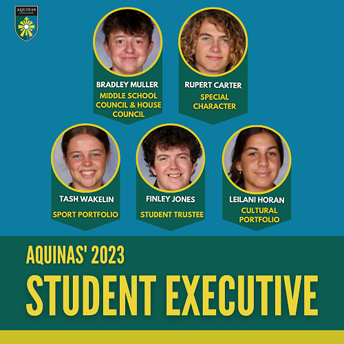 Aquinas is thrilled to announce its 2023 Student Executive team. We wish them all the best in their new leadership roles and look forward to the initiatives they introduce.