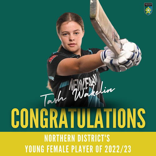 Visit this articleAnother accolade for Aquinas cricket superstar Tash Wakelin… The Yr 13 student has been named Northern District’s Young Female Player of the Year, a title bestowed on the district’s most outstanding female cricketer under age 21.