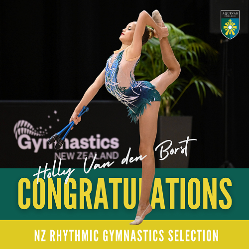 Visit this articleAquinas College is proud to announce it has another NZ representative in its ranks! Yr 12’s Holly Van den Borst has been chosen to represent NZ in Rhythmic Gymnastics at the Singapore Open next month.
