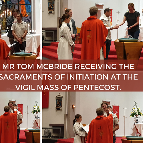 Visit this articleOur congratulations and warm blessings to Mathematics teacher Thomas McBride who was baptised, confirmed and received his Frist Communion at the Feast of Pentecost Vigil Mass this month. Welcome to our community of faith Tom!