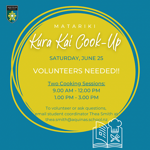 Visit this articleWe’re proud to highlight the work of our student-led Cultural Committee which is spearheading Aquinas participation in Kura Kai, a charity encouraging students to cook meals for local families in need.