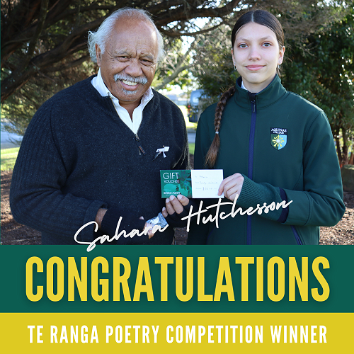 Visit this articleCongratulations to Year 11 poet Sahara Hutchesson who won this year’s Battle of Te Ranga poetry competition and a write-up in the BOP Times!