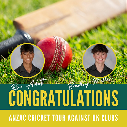 Visit this articleWe’re giving a shout-out to senior school cricketers Rico Adsett and Bradley Muller who recently travelled to the UK with an invitational ANZAC U18 team to take on seven UK clubs.