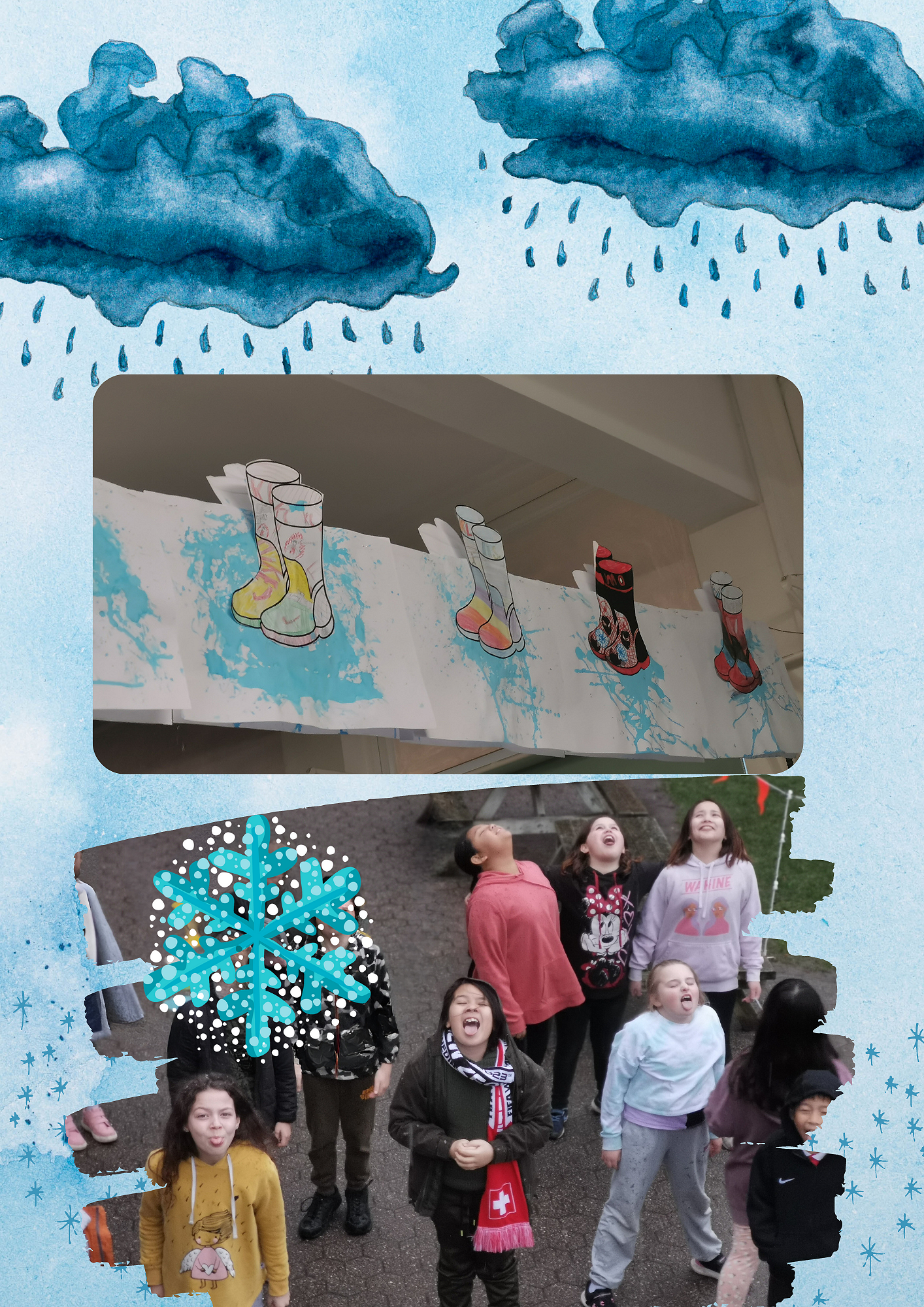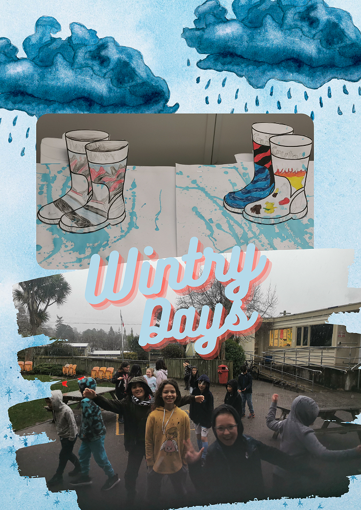 Term 3 is off to a chilly start. We made a splash with some gumboot art and got a taste of a real wintry day when we had some snow showers. We splattered dye to resemble a big puddle and added some vibrant colour to the cold with some bright gumboots.