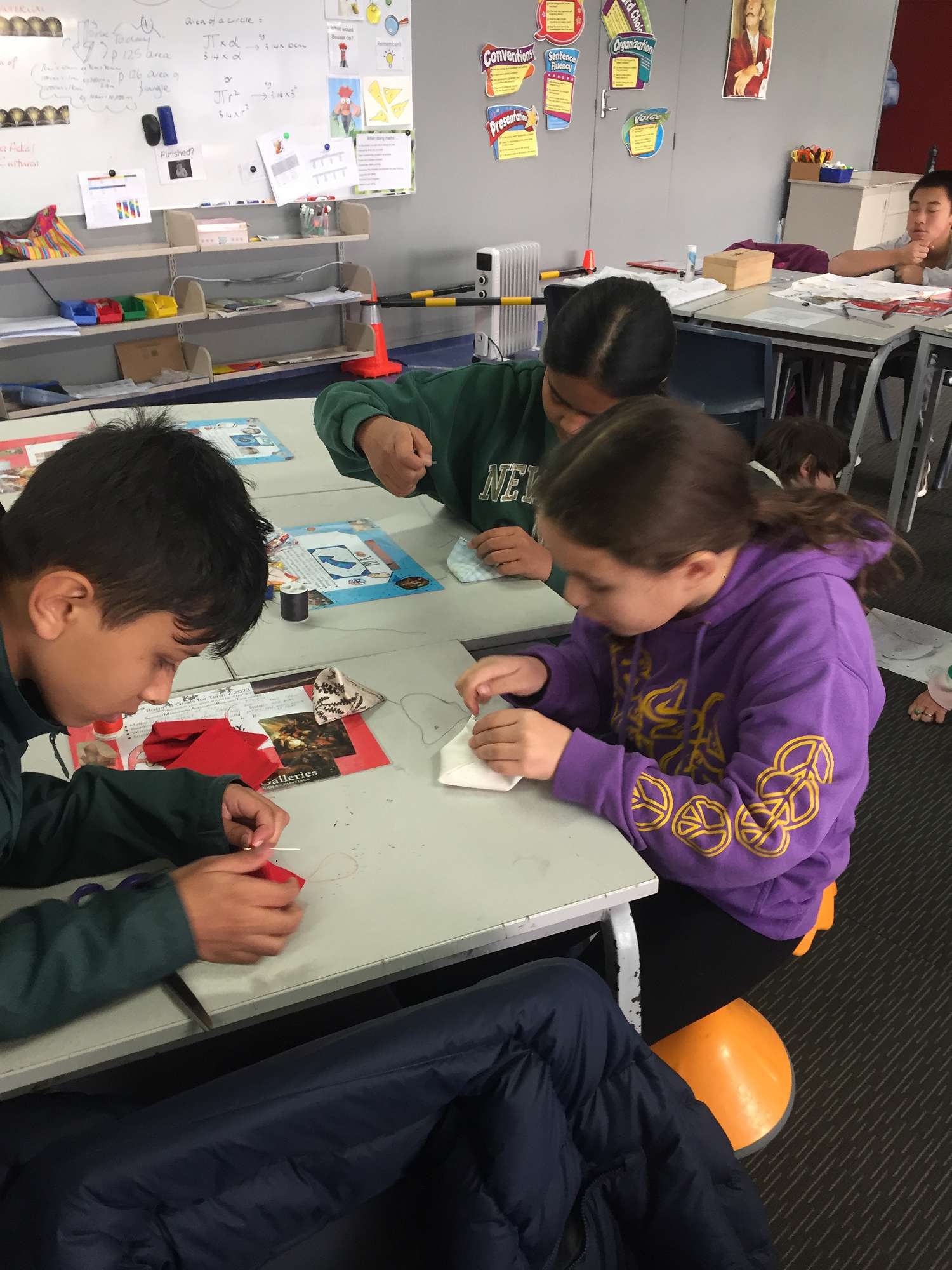 Fabric Technology: The year 7s have been working away at fabric rotations, where they learn the skills to help with their project, this year a boxed edge lunch bag. The rotations included setting up and labelling a sewing machine, sewing on a button, using an iron, laying a paper pattern onto fabric, learning to hand sew a running stitch - and all year 7-8 students have been sitting their sewing machine licence, ready to start their project! A lot of fun and important life skills being learnt : )